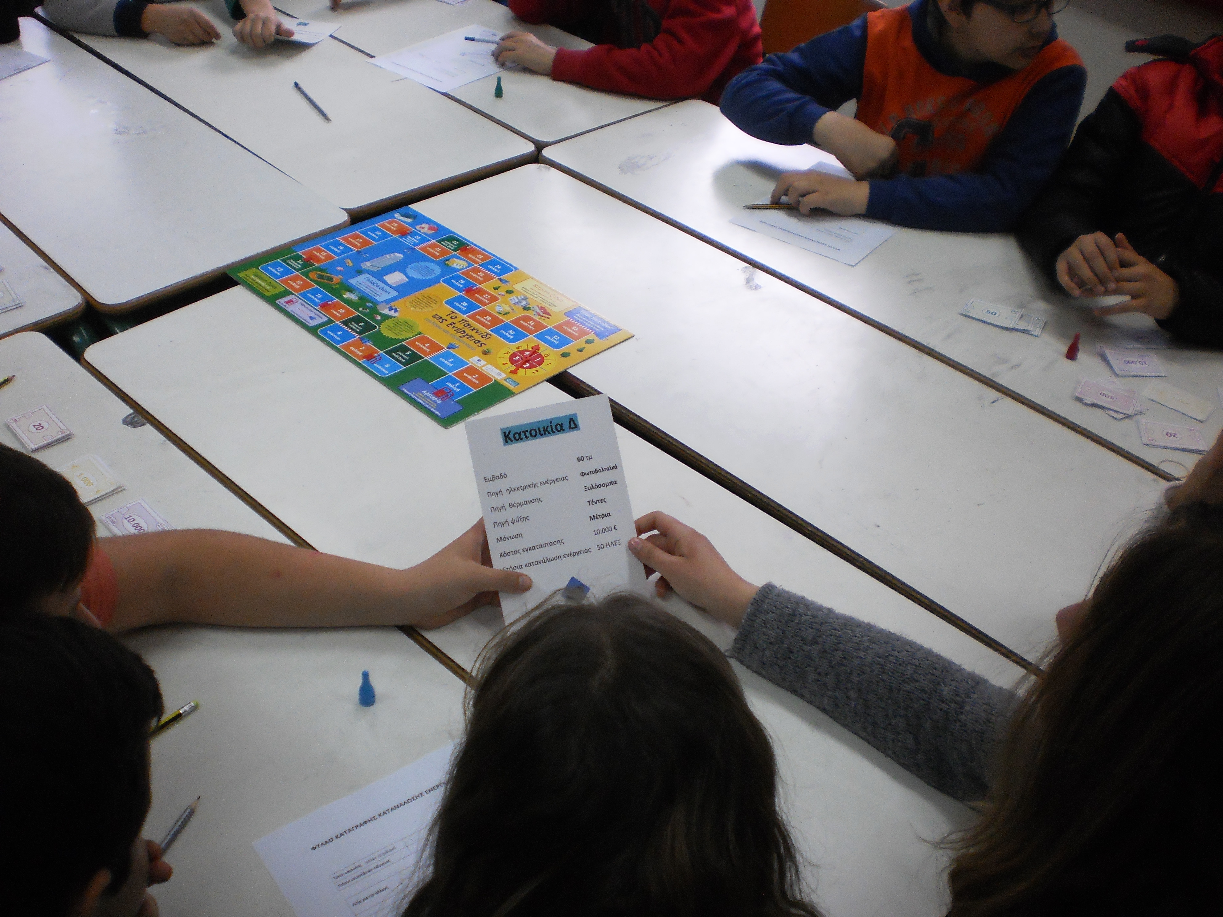 Μετά την πολύ ενδιαφέρουσα συζήτηση περί ενέργειας, εξοικονόμησης και ορθολογικής χρήσης της, το παιχνίδι ξεκίνησε! Οι κανόνες δόθηκαν, οι μαθητές χωρίστηκαν στις ομάδες τους, οι ρόλοι μοιράστηκαν, και όλοι οι μαθητές της τάξης καθισμένοι γύρω από ένα τεράστιο τραπέζι, ξόδεψαν χρήματα, έκαναν επιλογές, εξέφρασαν απόψεις, αντιμετώπισαν καταστάσεις, κατέληξαν σε συμπεράσματα και όλα αυτά διασκεδάζοντας.