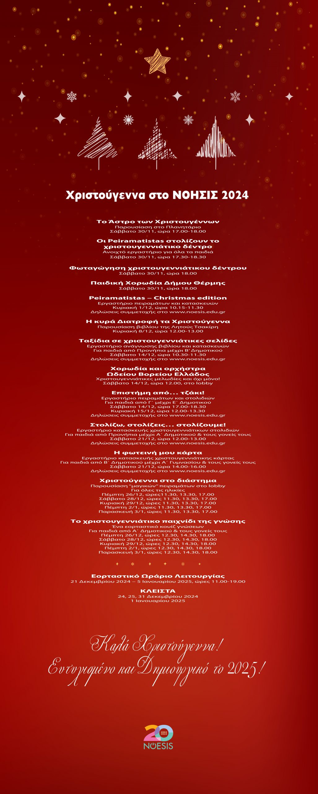 Like every year, this year from the beginning of December to the beginning of January, we are waiting for you at NOESIS in a festive mood, having planned many activities in the spirit of the days.
