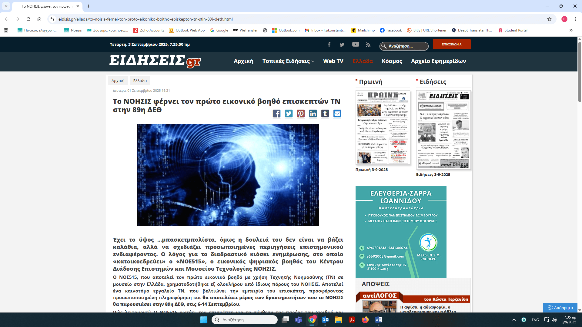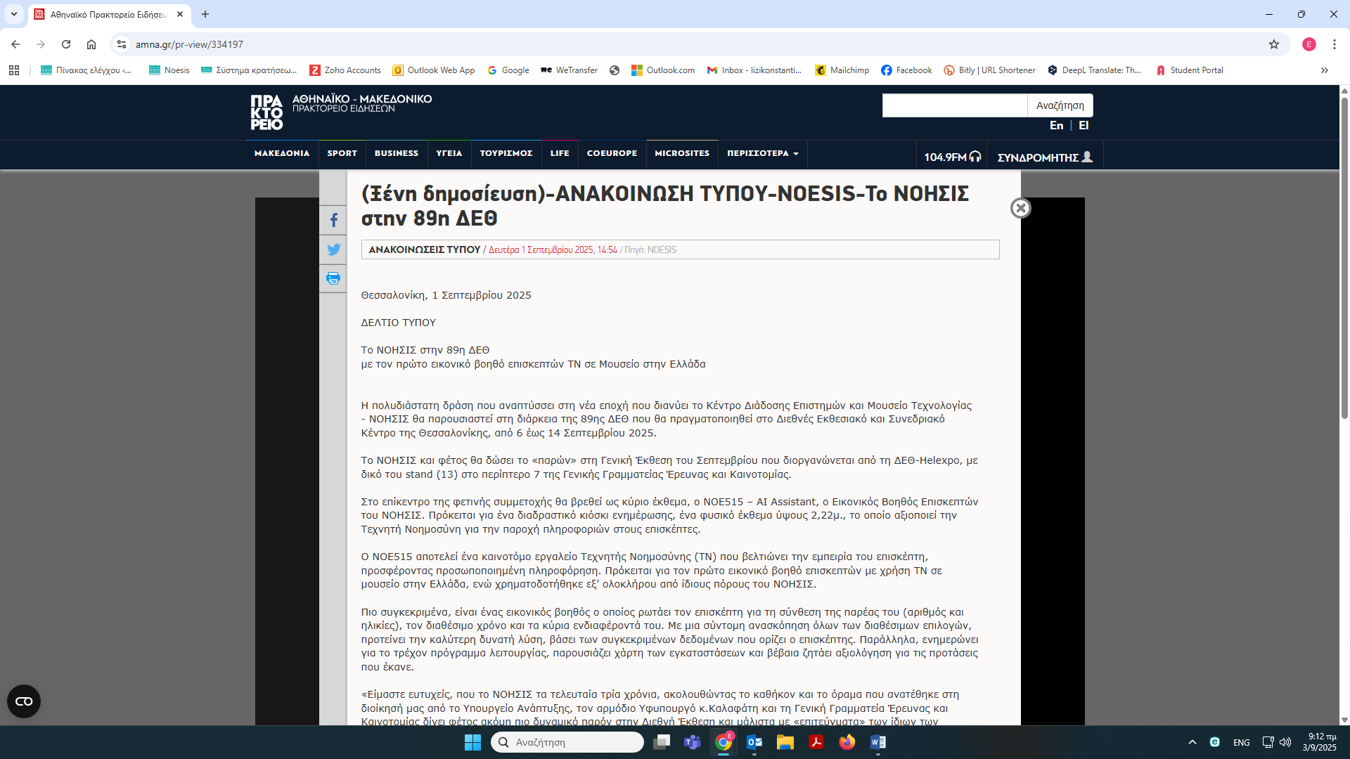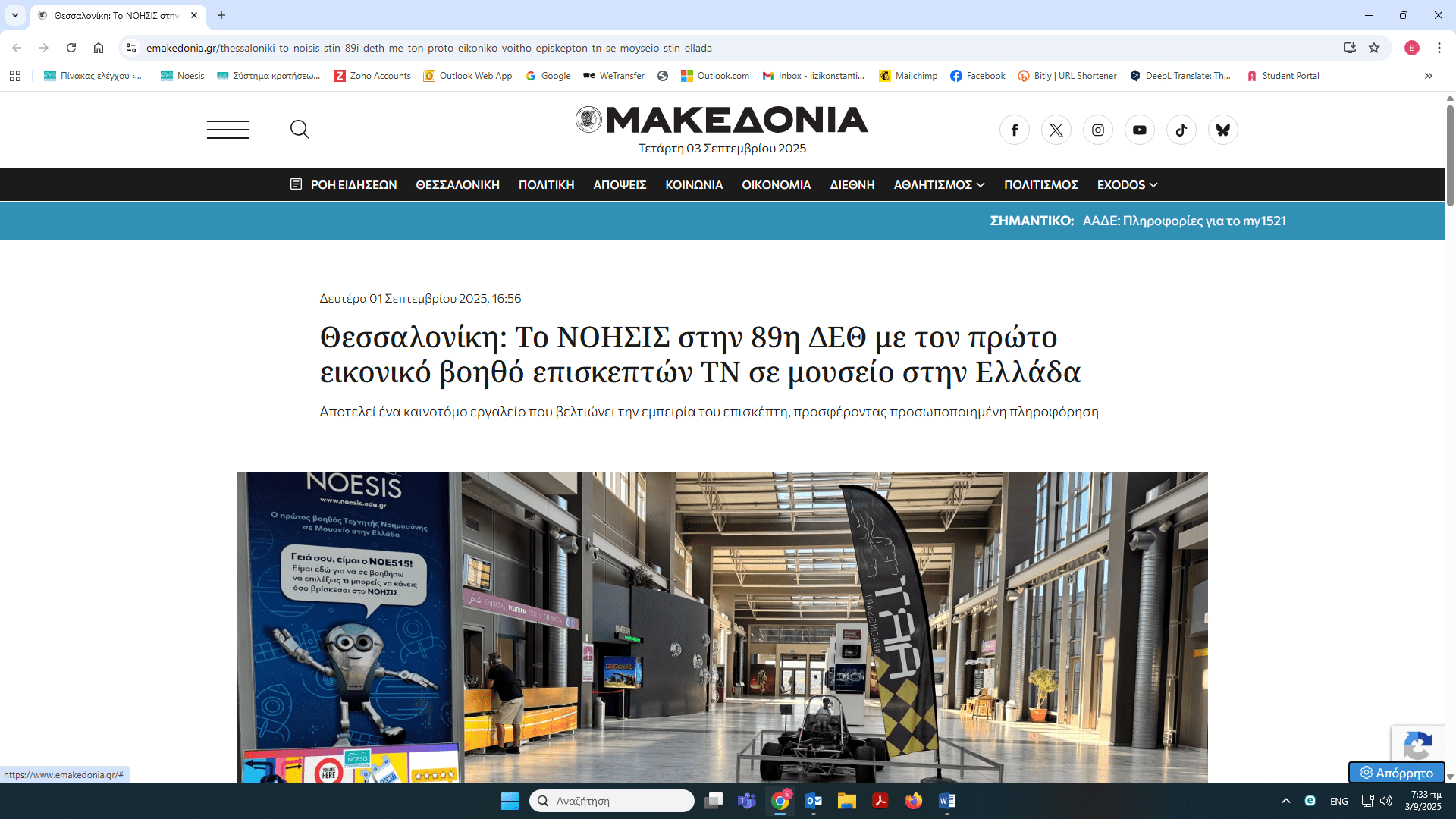 Το ΝΟΗΣΙΣ στην 89η ΔΕΘ – δημοσιεύματα