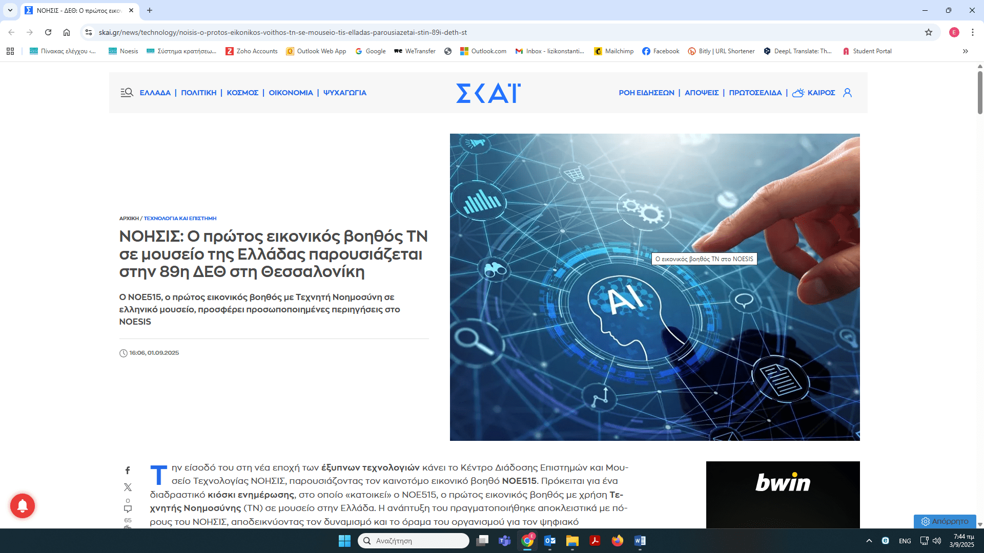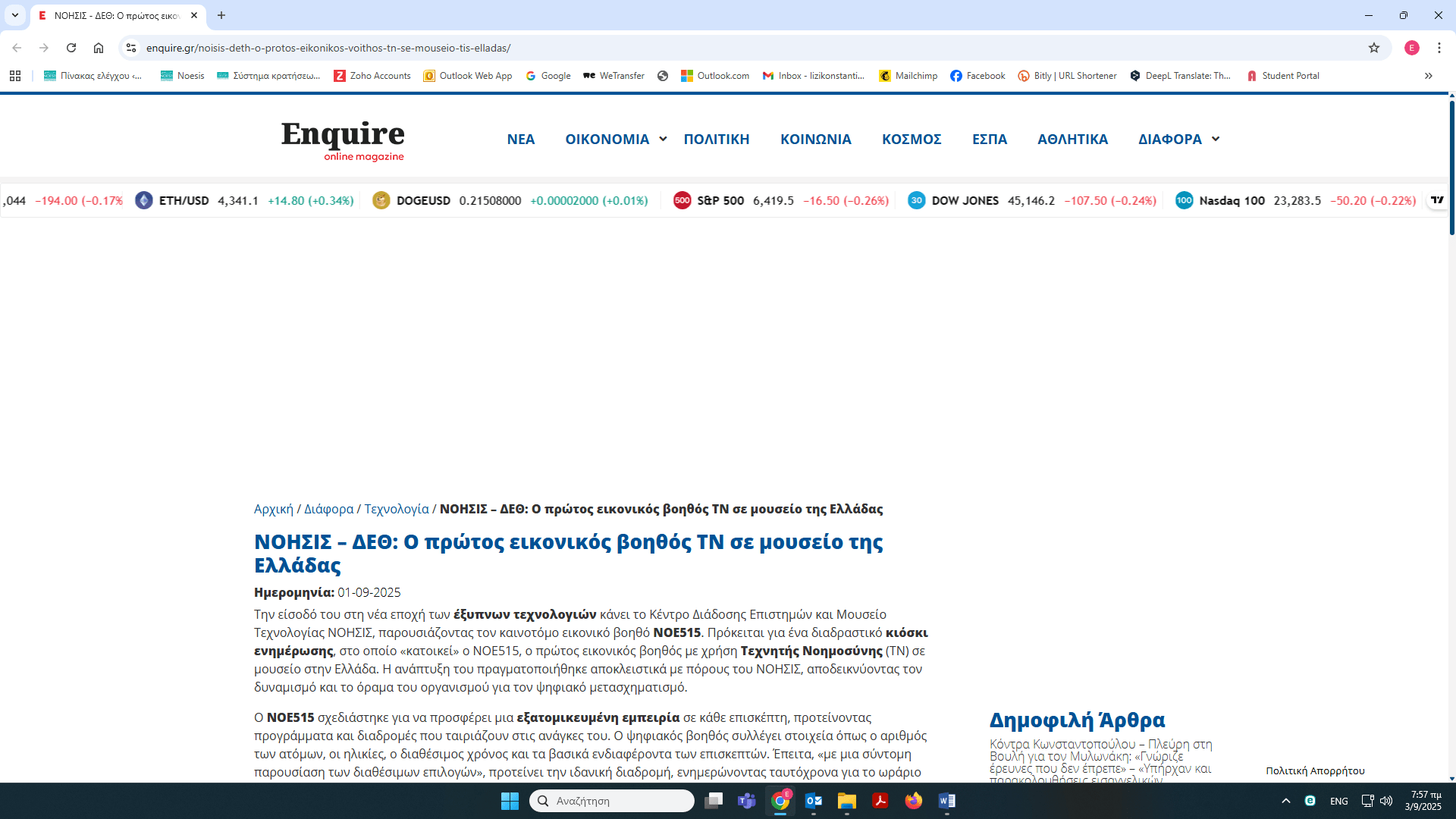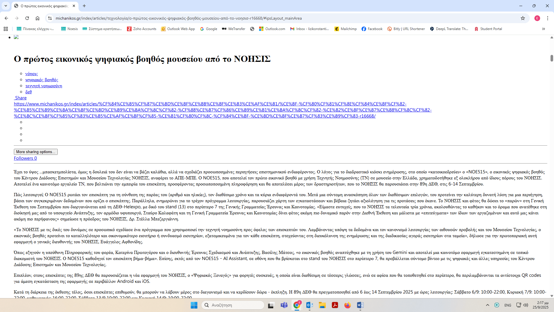 Το ΝΟΗΣΙΣ στην 89η ΔΕΘ – δημοσιεύματα