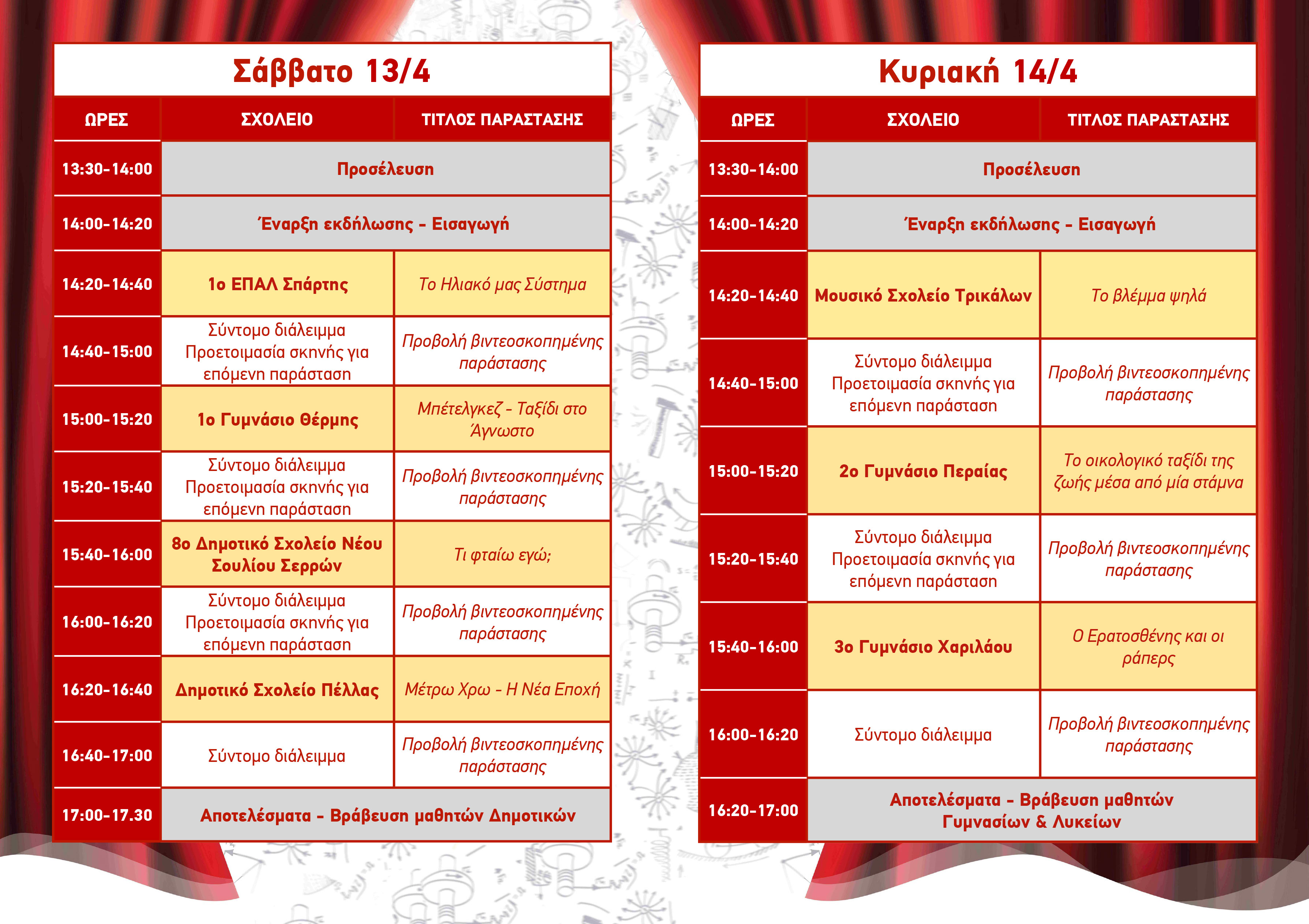 Ακολουθεί το πρόγραμμα των παραστάσεων: