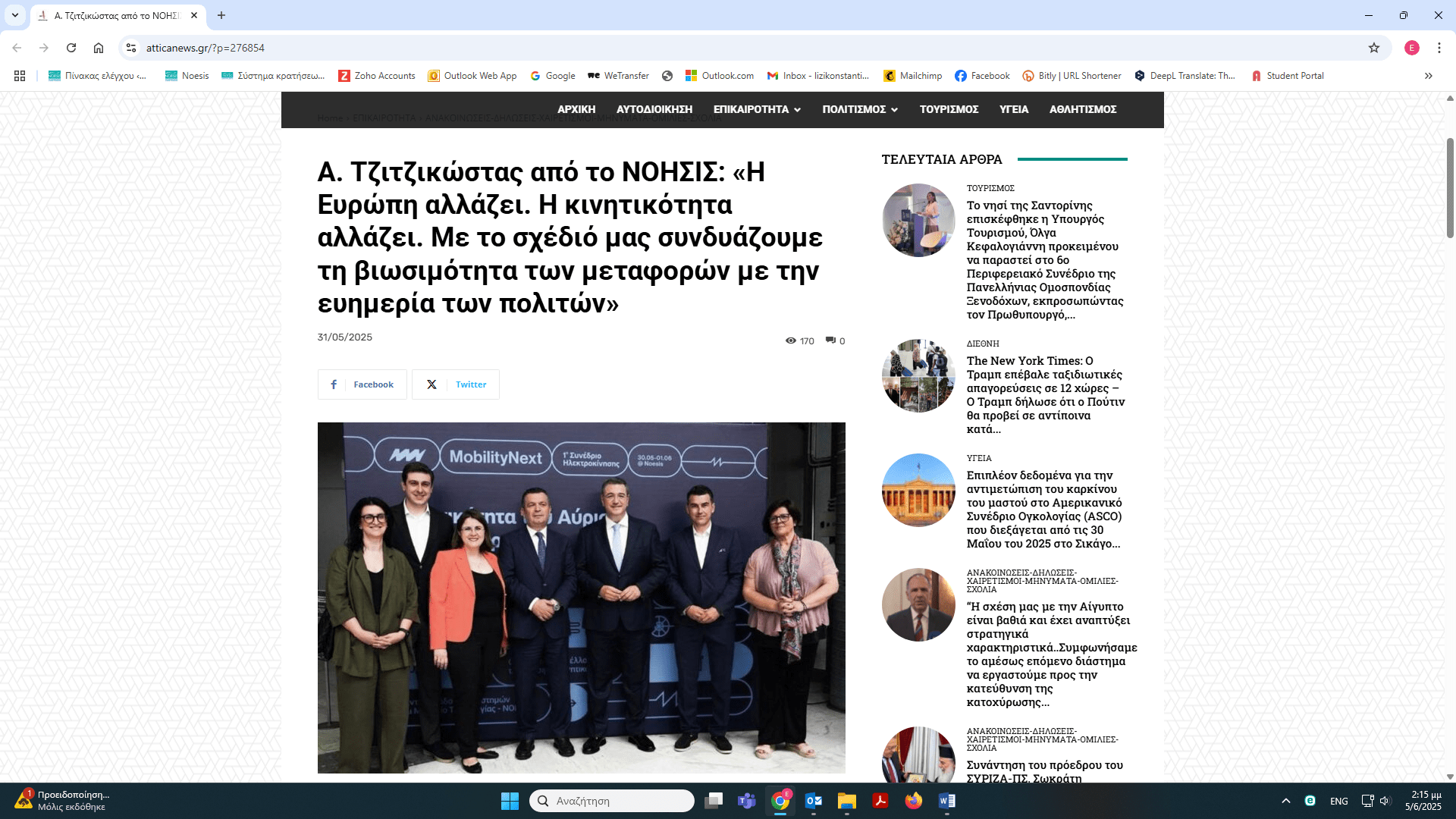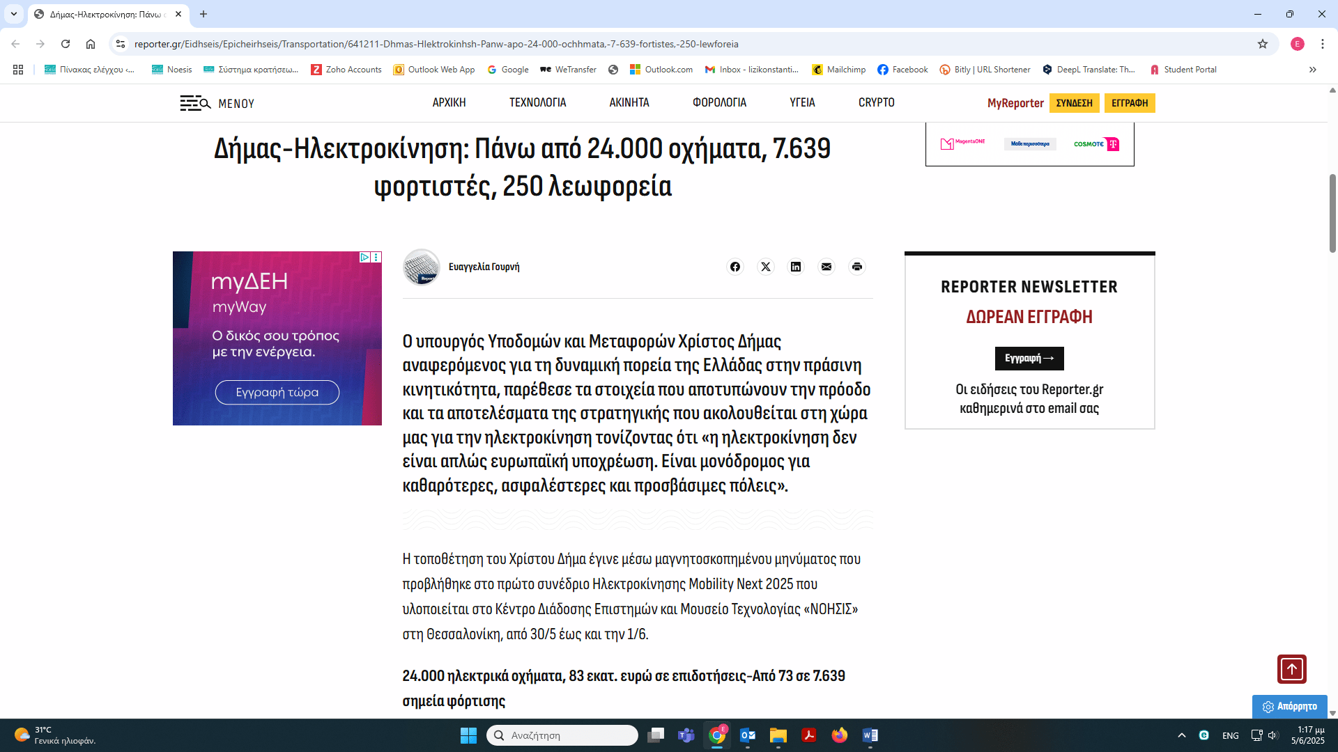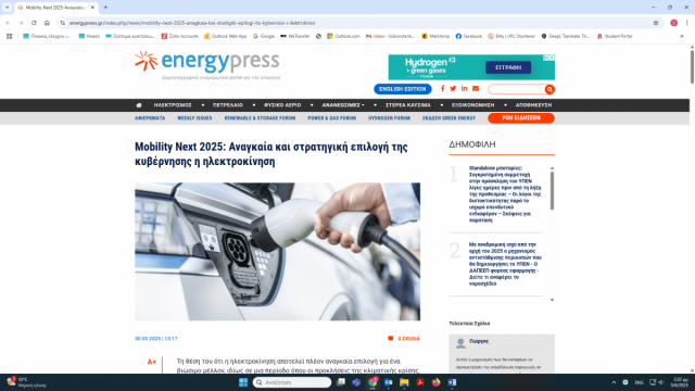 1ο Συνέδριο Ηλεκτροκίνησης Mobility Next εργασίες συνεδρίου – δημοσιεύματα