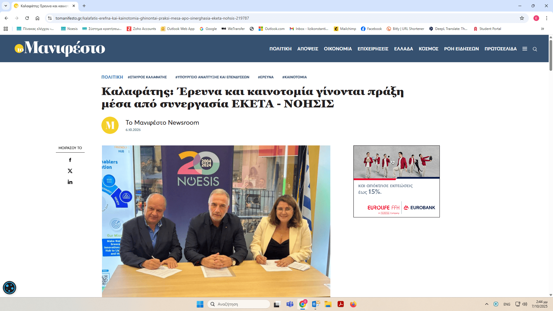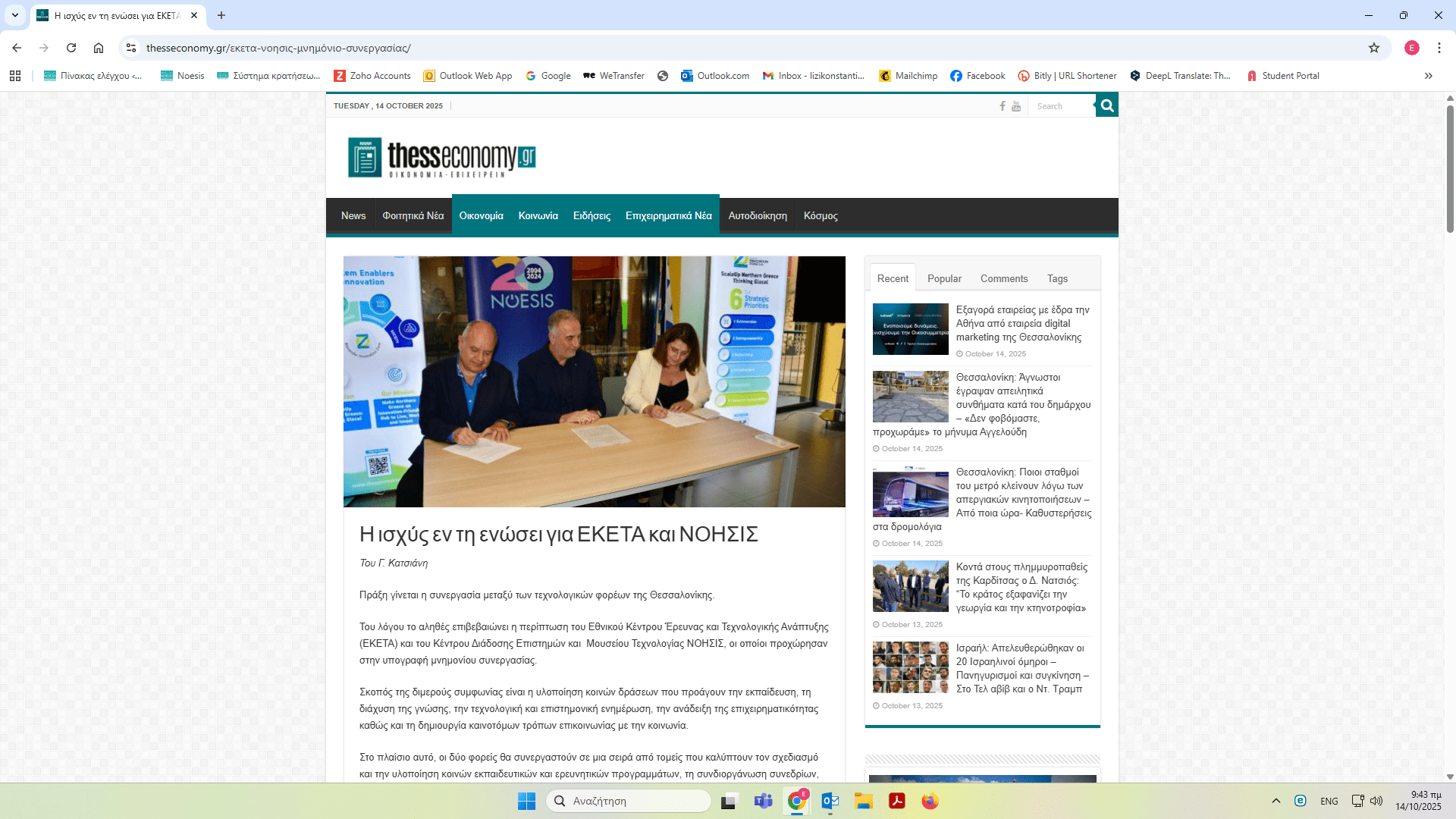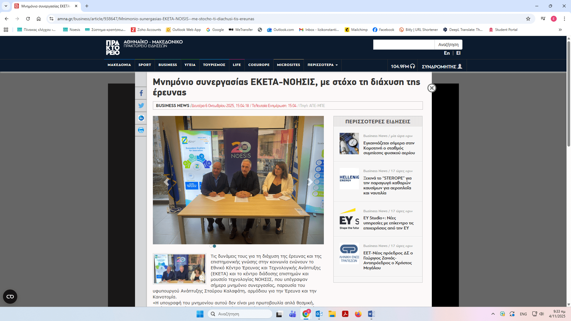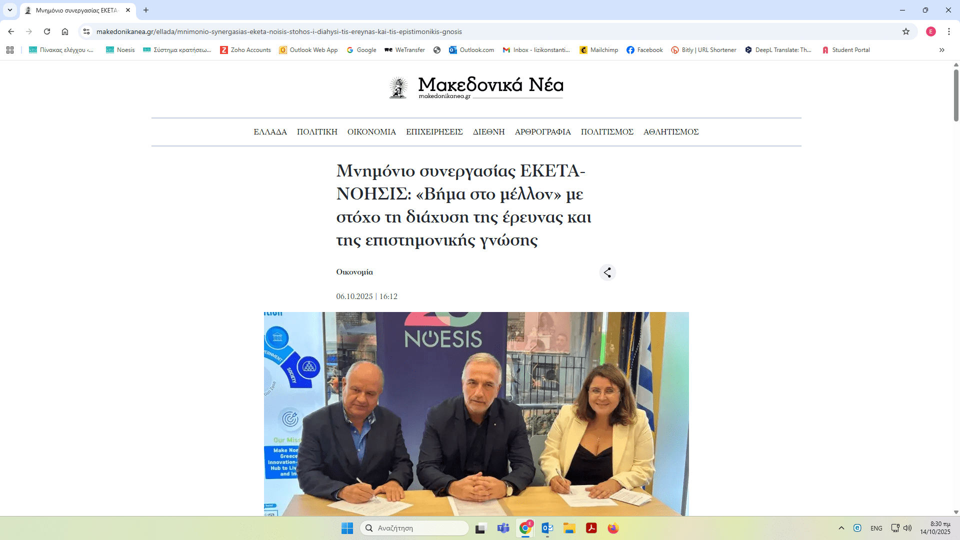 ΝΟΗΣΙΣ και ΕΚΕΤΑ υπέγραψαν Μνημόνιο Συνεργασίας – δημοσιεύματα