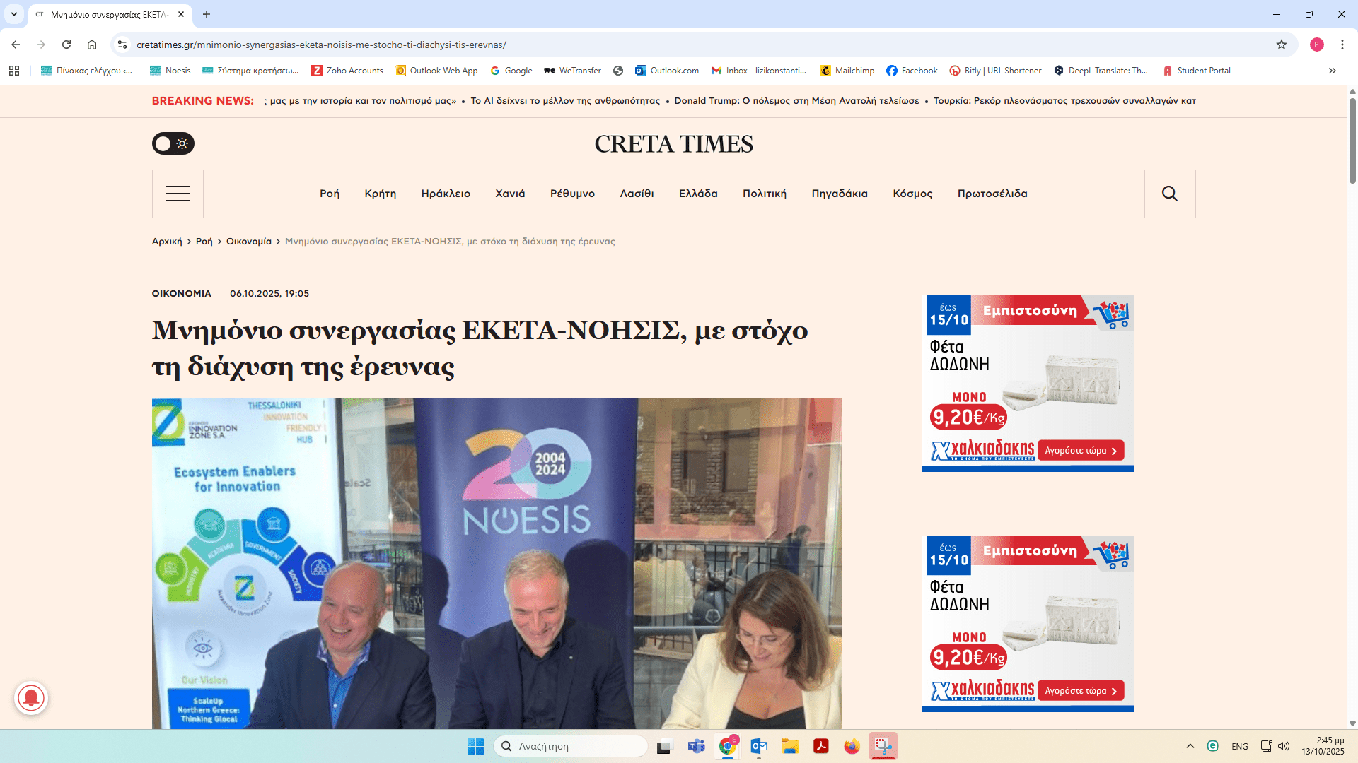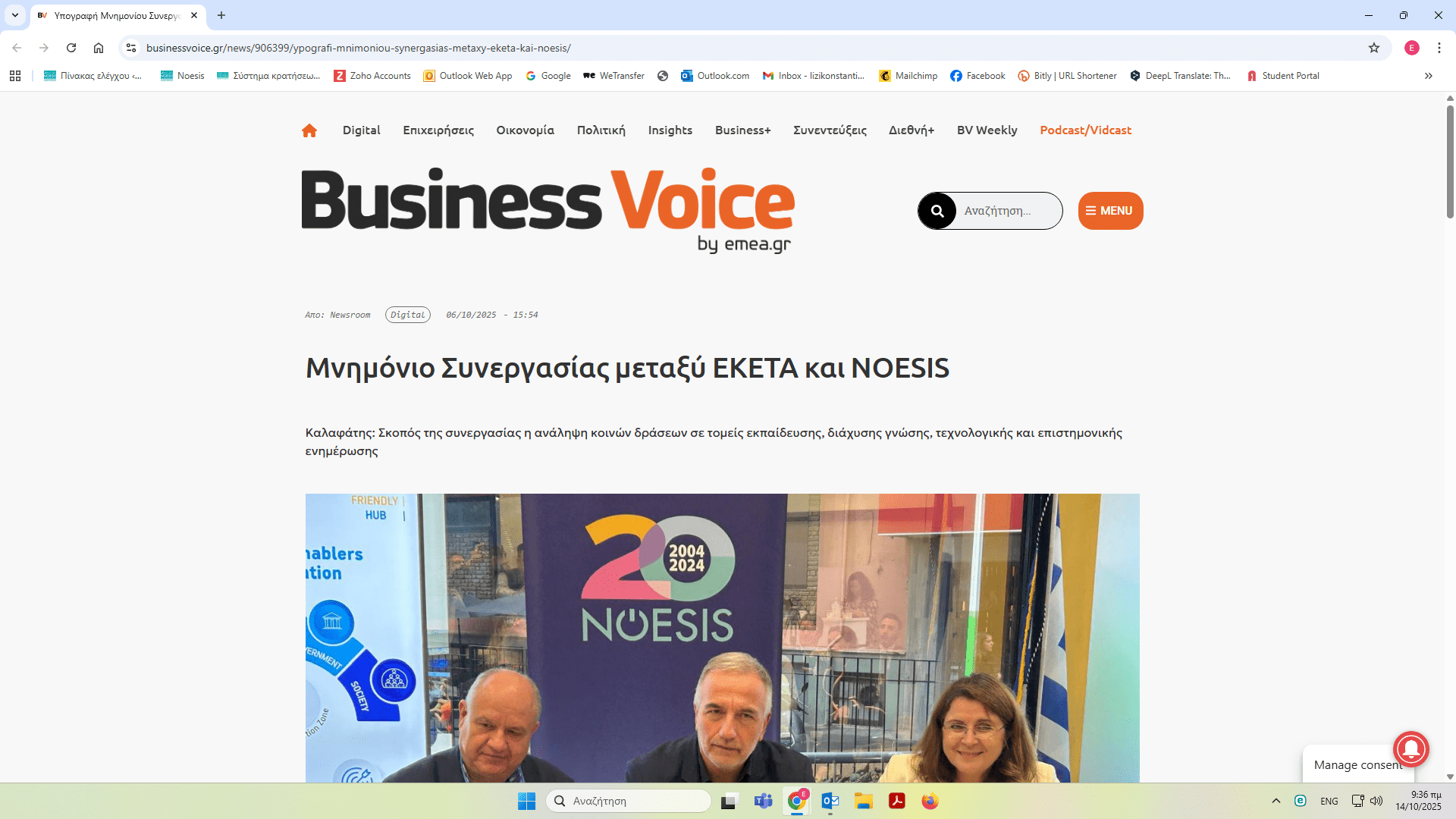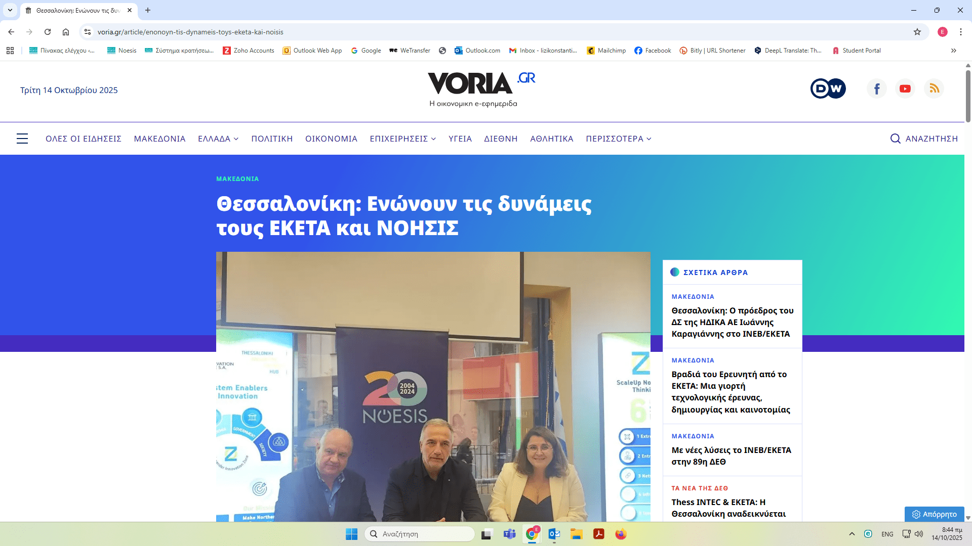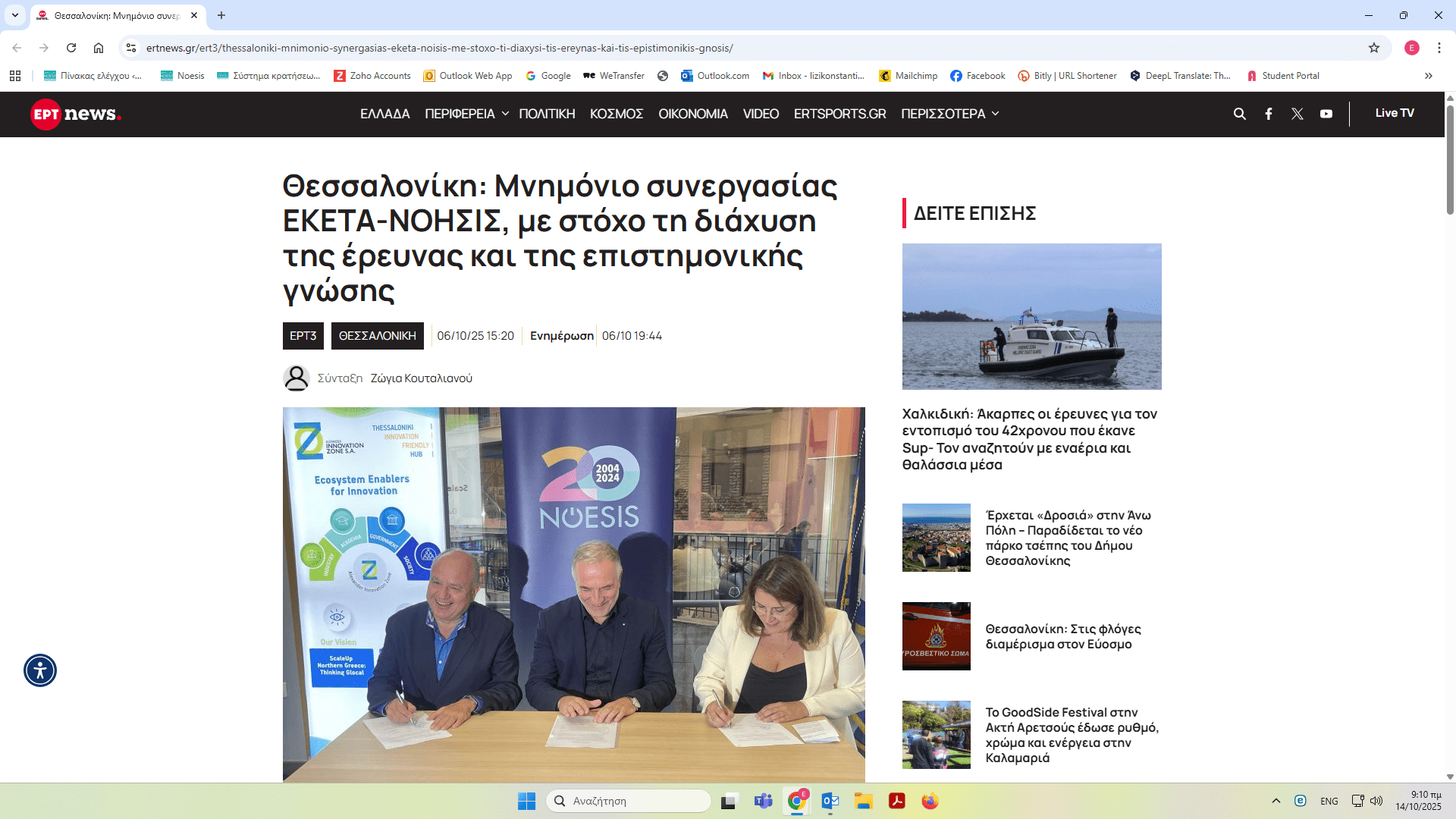 ΝΟΗΣΙΣ και ΕΚΕΤΑ υπέγραψαν Μνημόνιο Συνεργασίας – δημοσιεύματα
