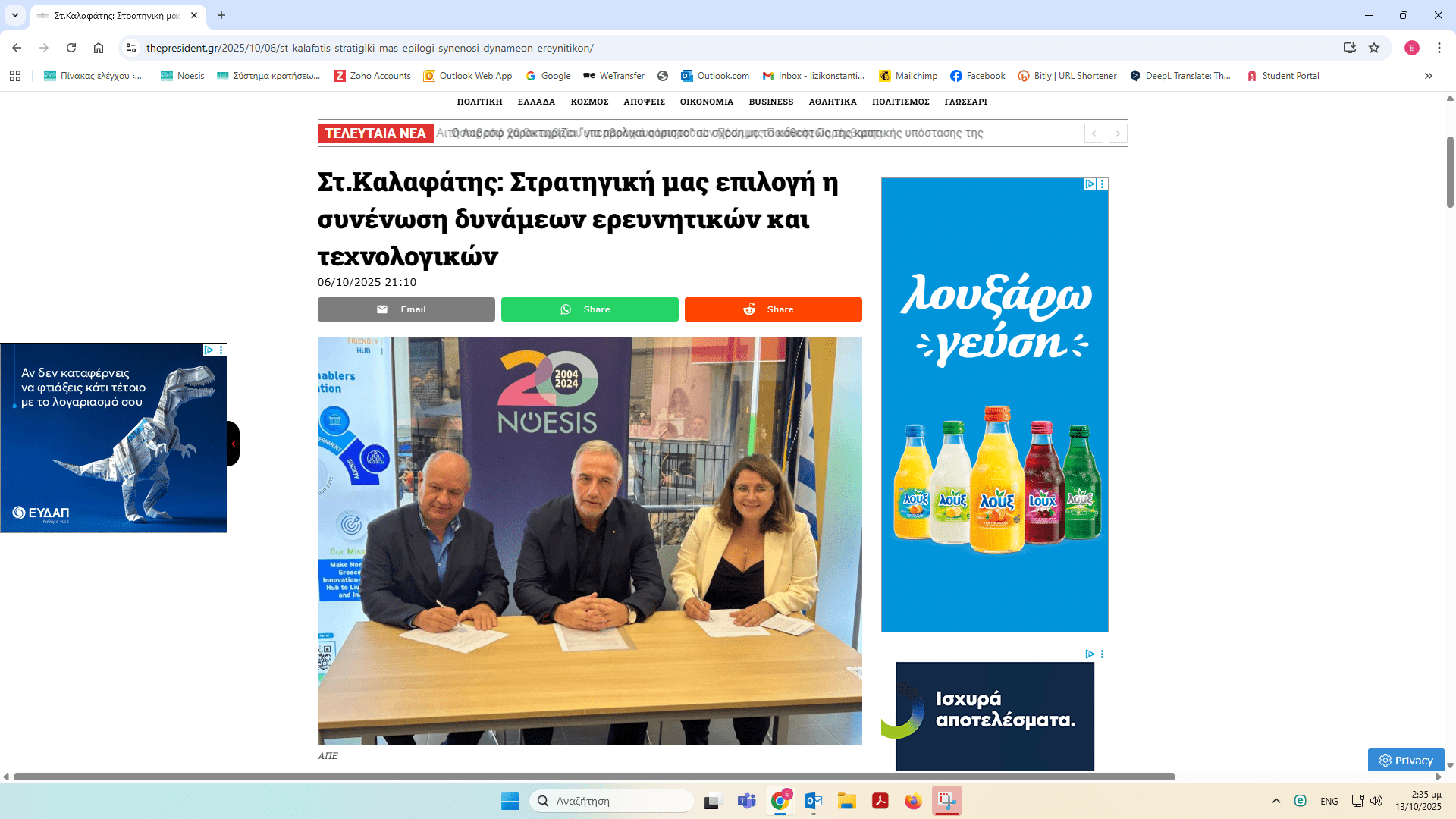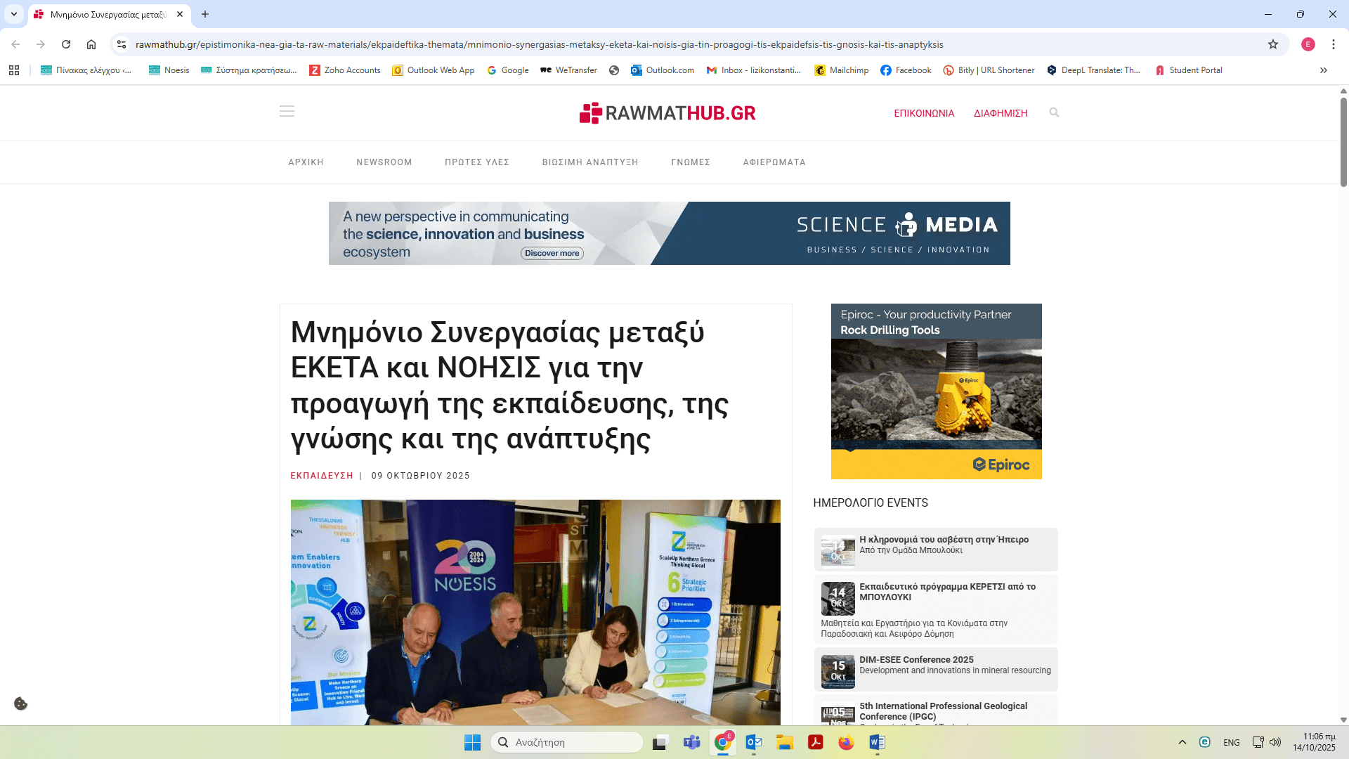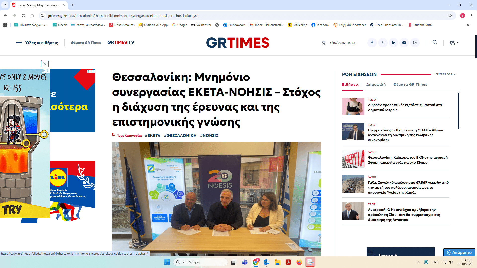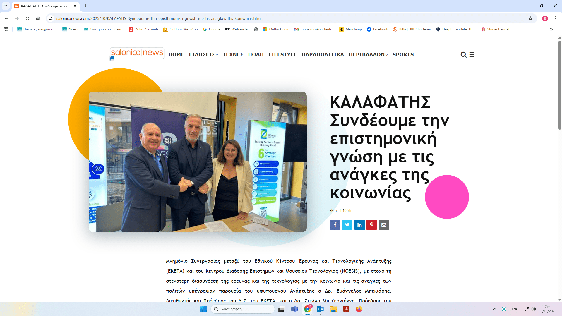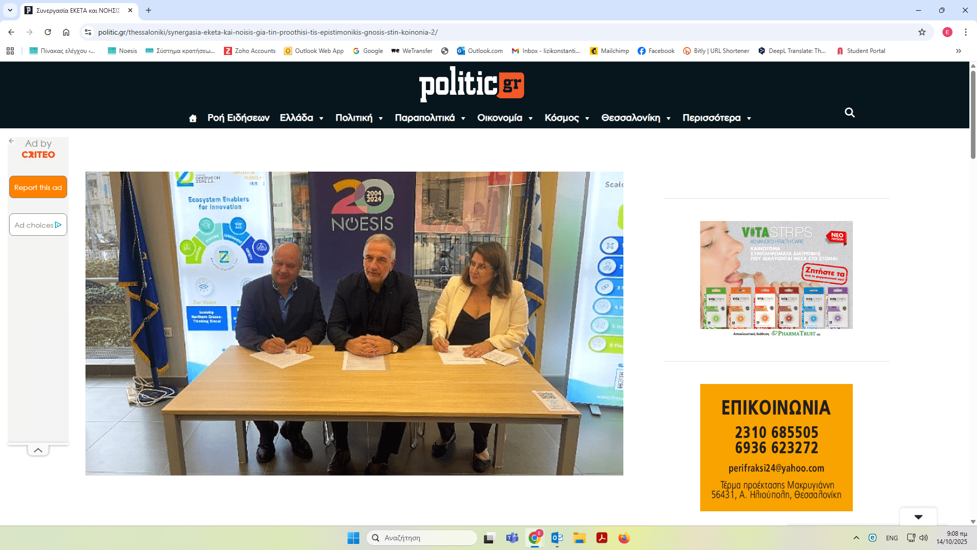 ΝΟΗΣΙΣ και ΕΚΕΤΑ υπέγραψαν Μνημόνιο Συνεργασίας – δημοσιεύματα