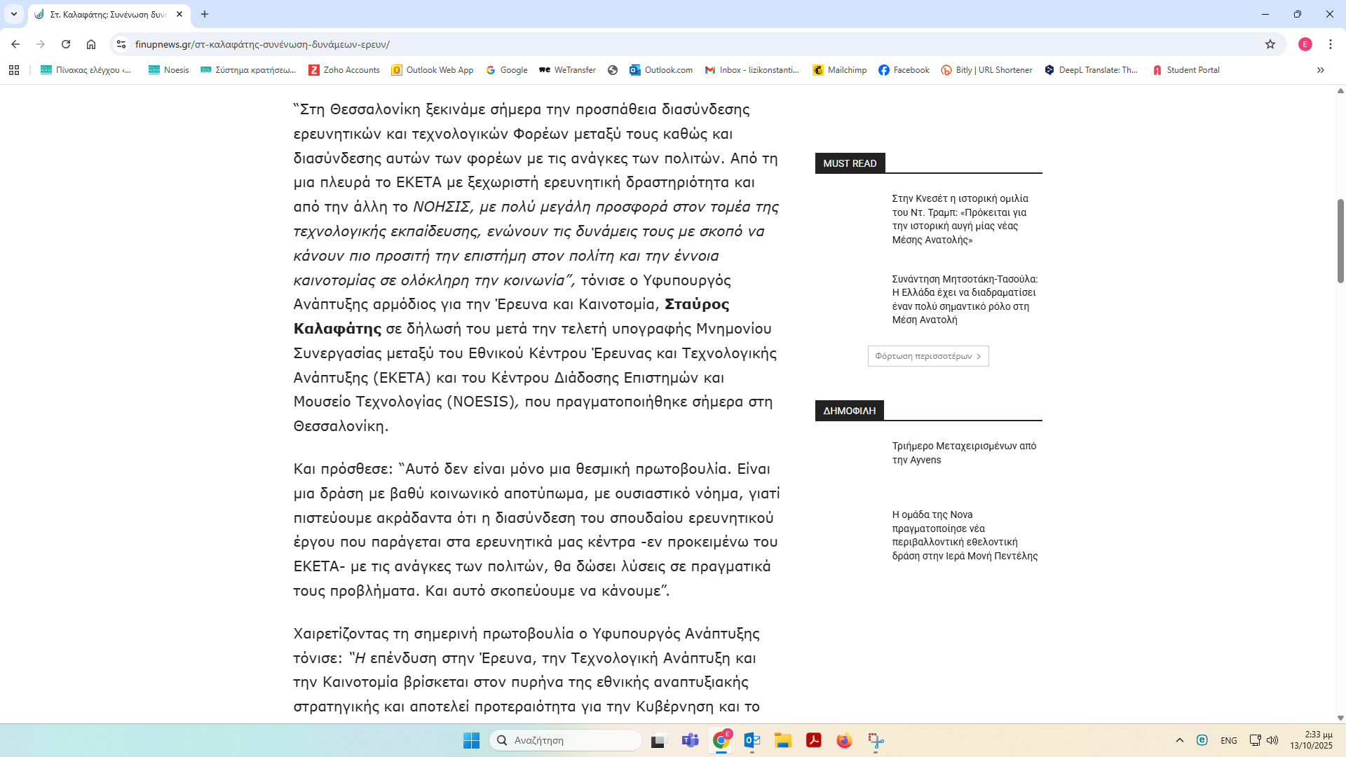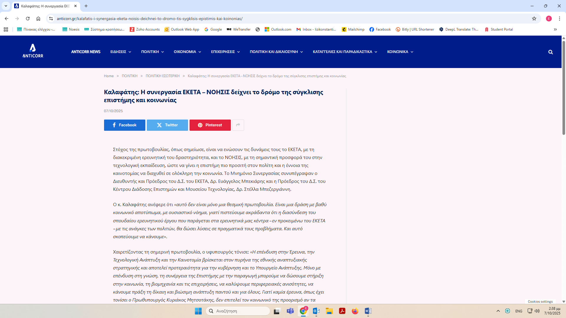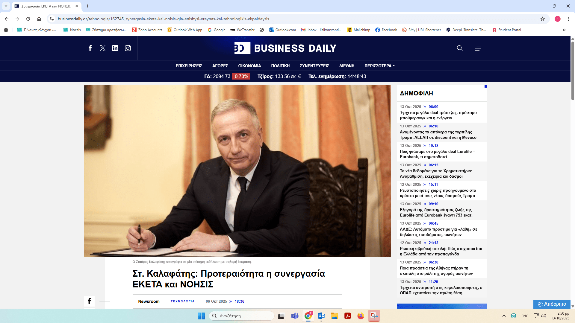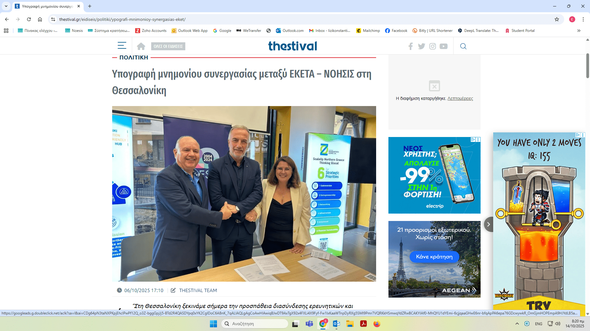 ΝΟΗΣΙΣ και ΕΚΕΤΑ υπέγραψαν Μνημόνιο Συνεργασίας – δημοσιεύματα