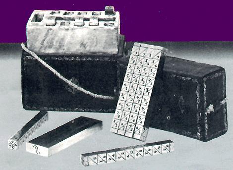 Το 1617 ο Νέπιερ κατασκεύασε μια πρωτόγονη -μη λογαριθμική – συσκευή για την εκτέλεση πολλαπλασιασμών με το όνομα “κόκκαλα του Νέπιερ”.