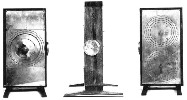 Τρεις όψεις του ανακατασκευασμένου από τον καθηγητή Πράις μηχανισμού στις ξύλινες θήκες του
