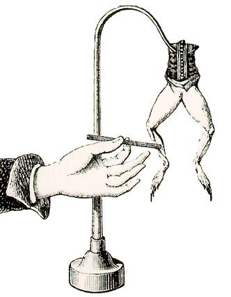 Το 1771 ένας Ιταλός ανατόμος, ο Λουίτζι Γκαλβάνι (Luigi Galvani), παρατήρησε τα εξής: Εκτελώντας ένα πείραμα με νεκρούς βατράχους, είδε ότι αν έφερνε σε επαφή τα νεύρα των μηρών με δύο διαφορετικά μέταλλα (π.χ. σίδηρο και χαλκό) ο μυς έκανε μία σύσπαση. Αυτή όμως είναι μία ιδιότητα μόνο των ζωντανών μυών.