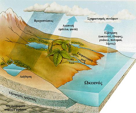 Με τον όρο “υδρολογικό κύκλο” εννοούμε τη γενική κίνηση της υδάτινης μάζας σ`όλες της τις φάσεις και από όλους τους δυνατούς δρόμους