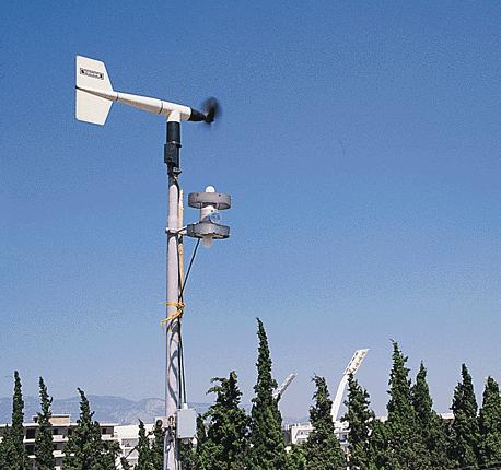 Ανεμόμετρο έλικας στερεωμένο στην κορυφή ενός στύλου.