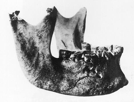 Οστούν κάτω γνάθου με σημεία επέμβασης για παροχέτευση αποστήματος. Αίγυπτος περί το 2500π.χ.
