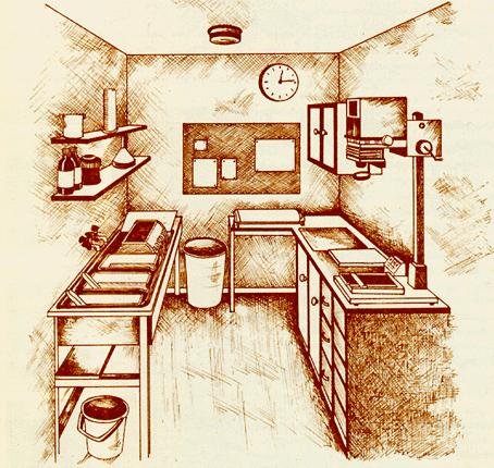 Ο χώρος αυτός, όπου γίνεται η εμφάνιση και η εκτύπωση του φιλμ ονομάζεται “σκοτεινός θάλαμος”. Πρέπει να είναι σκοτεινός, με σταθερή θερμοκρασία και εξαερισμό για τις αναθυμιάσεις. Εκεί βρίσκονται οι λεκάνες με τα χημικά εμφάνισης, η εκτυπωτική μηχανή, καθώς και άλλα εξαρτήματα που ποικίλουν από το είδος των φωτογραφιών που θέλουμε να εκτυπώσουμε.