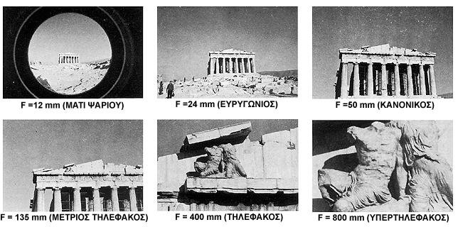 Φωτογραφίες του Παρθενώνα με χρήση διαφορετικών εστιακών αποστάσεων.