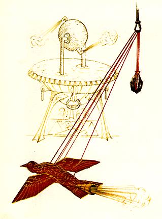 Ο Αρχύτας ο Ταραντινος (4ος αιώνας π.χ.) κατασκεύασε ένα αιωρούμενο αεριοπροωθούμενο περιστέρι και ο Ήρωνας ο Αλεξανδρινός (1ος αιώνας π.χ.) ένα καζάνι με ατμοστρόβιλο.