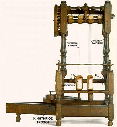Ο Τζέιμς Χάργκρεϊβς (James Hargreaves) το 1765 κατασκεύασε μία μηχανή, η οποία ήταν βασισμένη στην αρχή του τροχού κλώσης.
