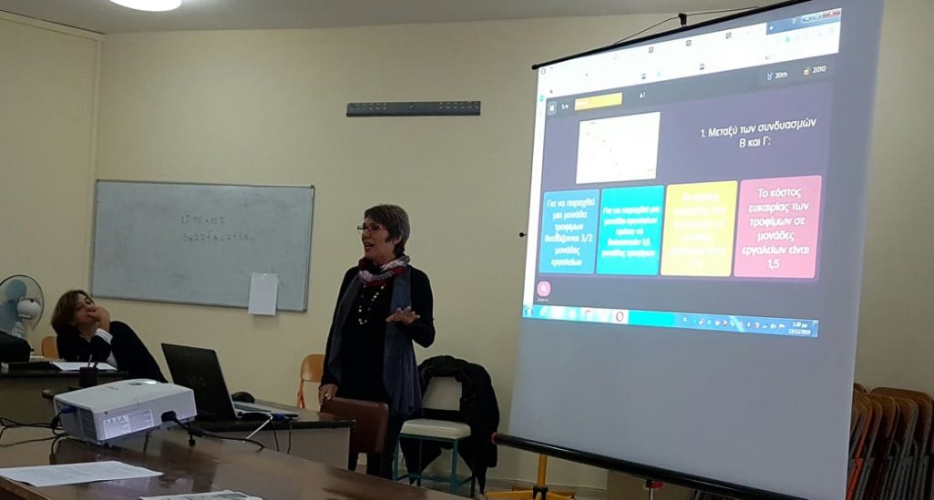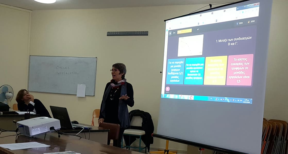 Η επιμόρφωση απευθυνόταν στους εκπαιδευτικούς κλάδων ΠΕ80 (Οικονομίας), οι οποίοι διδάσκουν οικονομικά μαθήματα στις Σχολικές Μονάδες (Γυμνάσια & Λύκεια) στη Λέσβο. H κυρία Καλφοπούλου συμμετείχε με την εισήγηση «Gamification με ή χωρίς application».