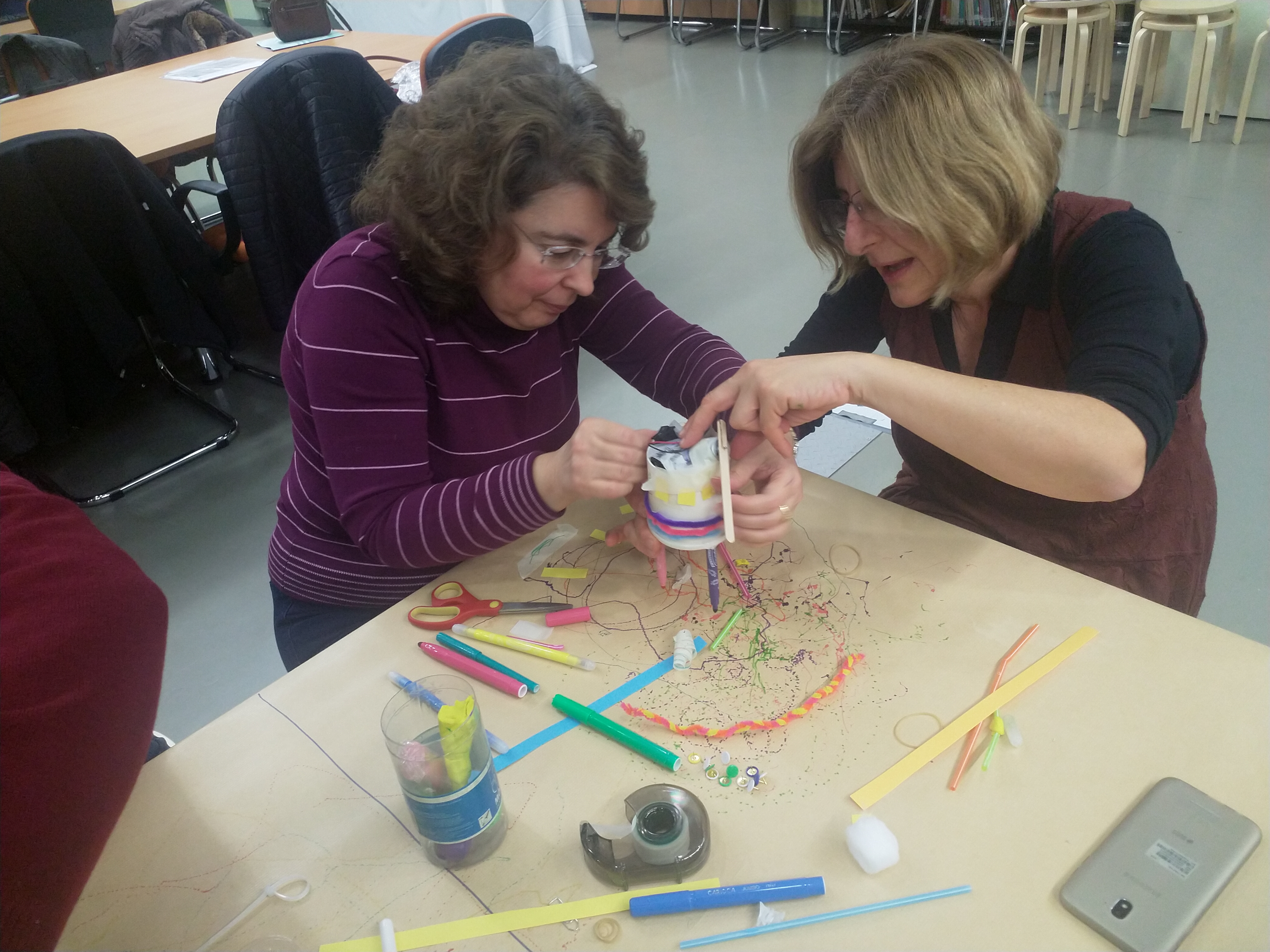 Στη συνέχεια, ακολούθησε μια προσομοίωση της επίσκεψης, την οποία θα πραγματοποιήσουν με την τάξη τους την επόμενη σχολική χρονιά. Οι εκπαιδευτικοί είχαν το ρόλο των μαθητών και ενεπλάκησαν σε ομάδες στη δραστηριότητα Tinkering, διαφορετική για τις δυο βαθμίδες της εκπαίδευσης, την οποία θα υλοποιήσουν και οι μαθητές τους, όταν επισκεφθούν το ΝΟΗΣΙΣ.