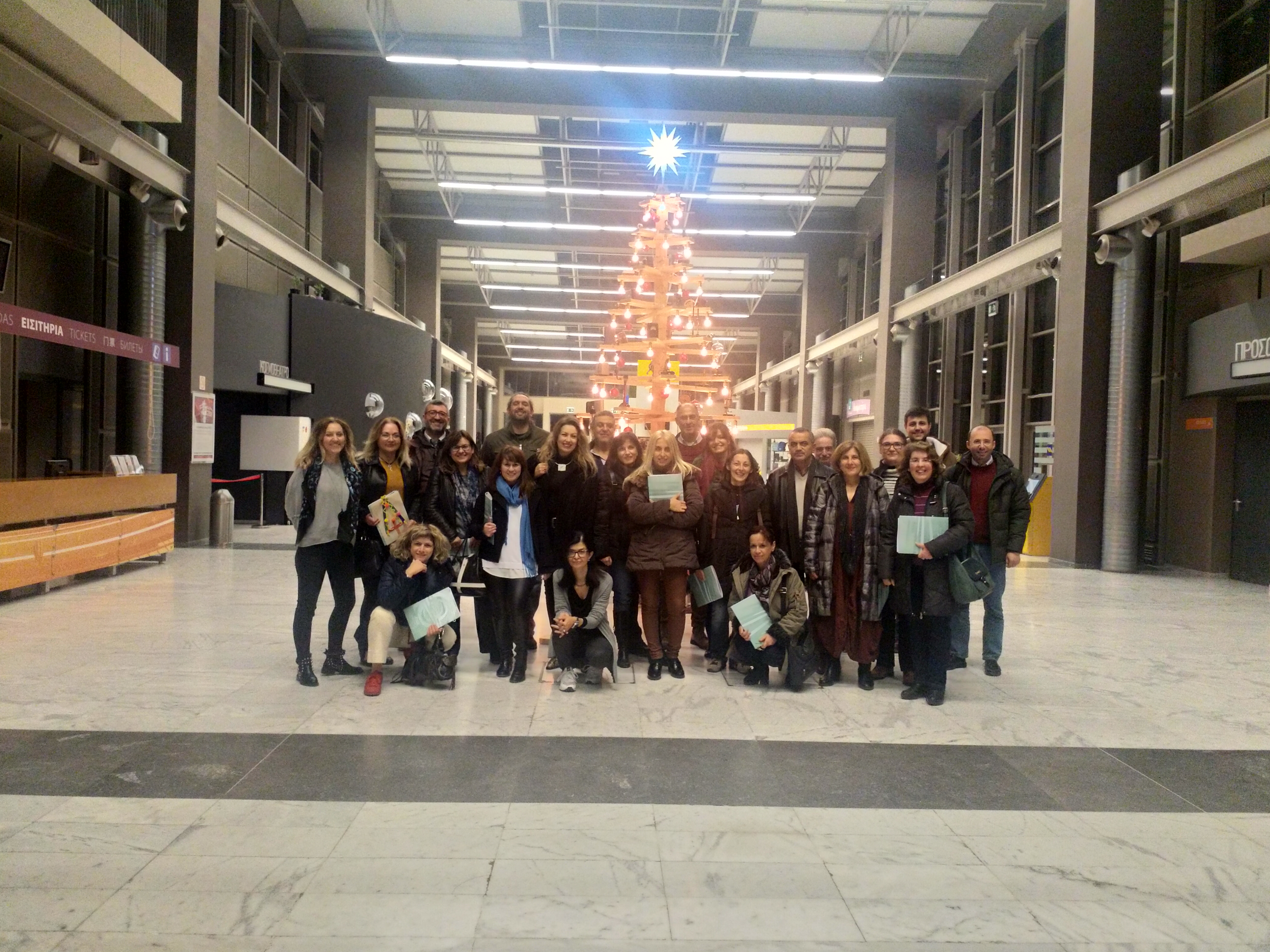 Στο τέλος του εργαστηρίου, κάθε ομάδα παρουσίασε τη δική της κατασκευή στις υπόλοιπες και όλοι μαζί φωτογραφηθήκαμε μπροστά στο χριστουγεννιάτικο δέντρο του ΝΟΗΣΙΣ!